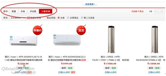 还有一类网页,如下面图3所示,网页内容中有多种排序方式,如按销量排序,按价格排序,如评论数排序,按上架时间排序。通过识别和提取当前的排序方式,然后判断当前的排序方式是否为按时间排序,如果是,则说明网页中的资源是按发布时间有序排布,反之亦然。图3中的排序方式是按上架时间排序,属于时间排序方式,所以该网页发布的资源是按发布时间有序的。