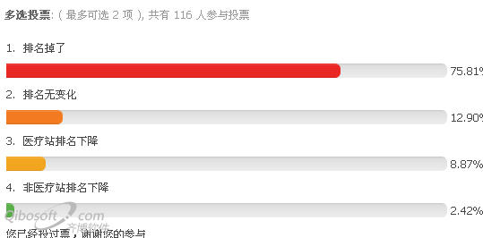 今天在seowhy论坛上看到了一个统计8.25网站排名下降的帖子,从上面的比例来看,排名下降的网站数量不少,其中医疗站排名下降的占不小比例。 六月份也K掉了大批的医疗站,有很多医疗站的内容质量确实很差,基本上就是复制、粘贴的内容。但是众多中小企业站的内容质量也不高,伪原创居多。猜测也许这次K站不会像六月份那么激烈,可能对大部分内容质量不高的网站给予降权,直接表现就是让你网站的排名迅速下滑。