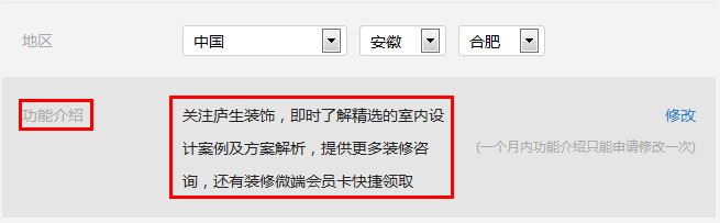 2. 公众号功能介绍:这部分文字相当于SEO中描述的撰写,这部分一要体现企业本身提供的服务性和产品,二来需要做到简练清楚。笔者建议格式:企业+服务/产品+咨询系统+互动功能性,如笔者的服务号描述如下,