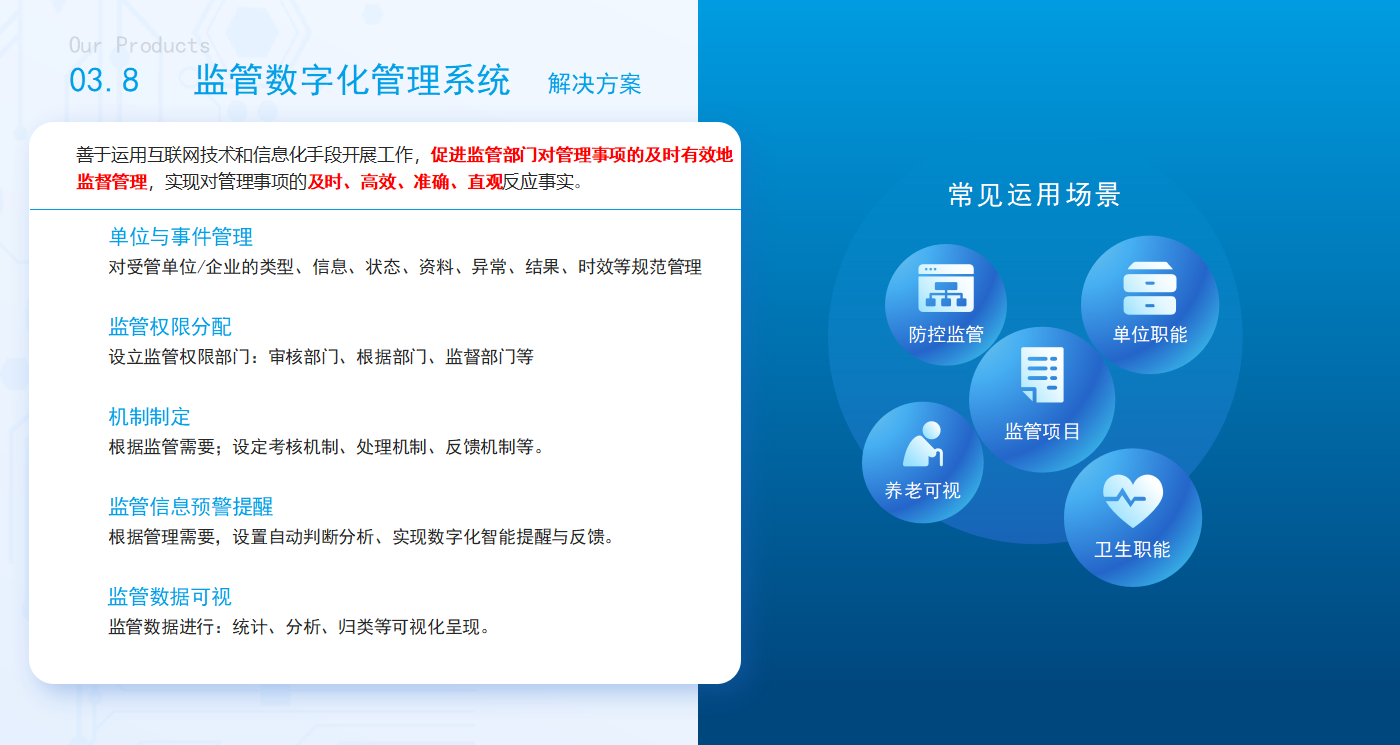 1. 提升监管效能:实现监管对象全覆盖、监管过程全记录、监管数据全共享,大幅提升监管工作的精准性和时效性。