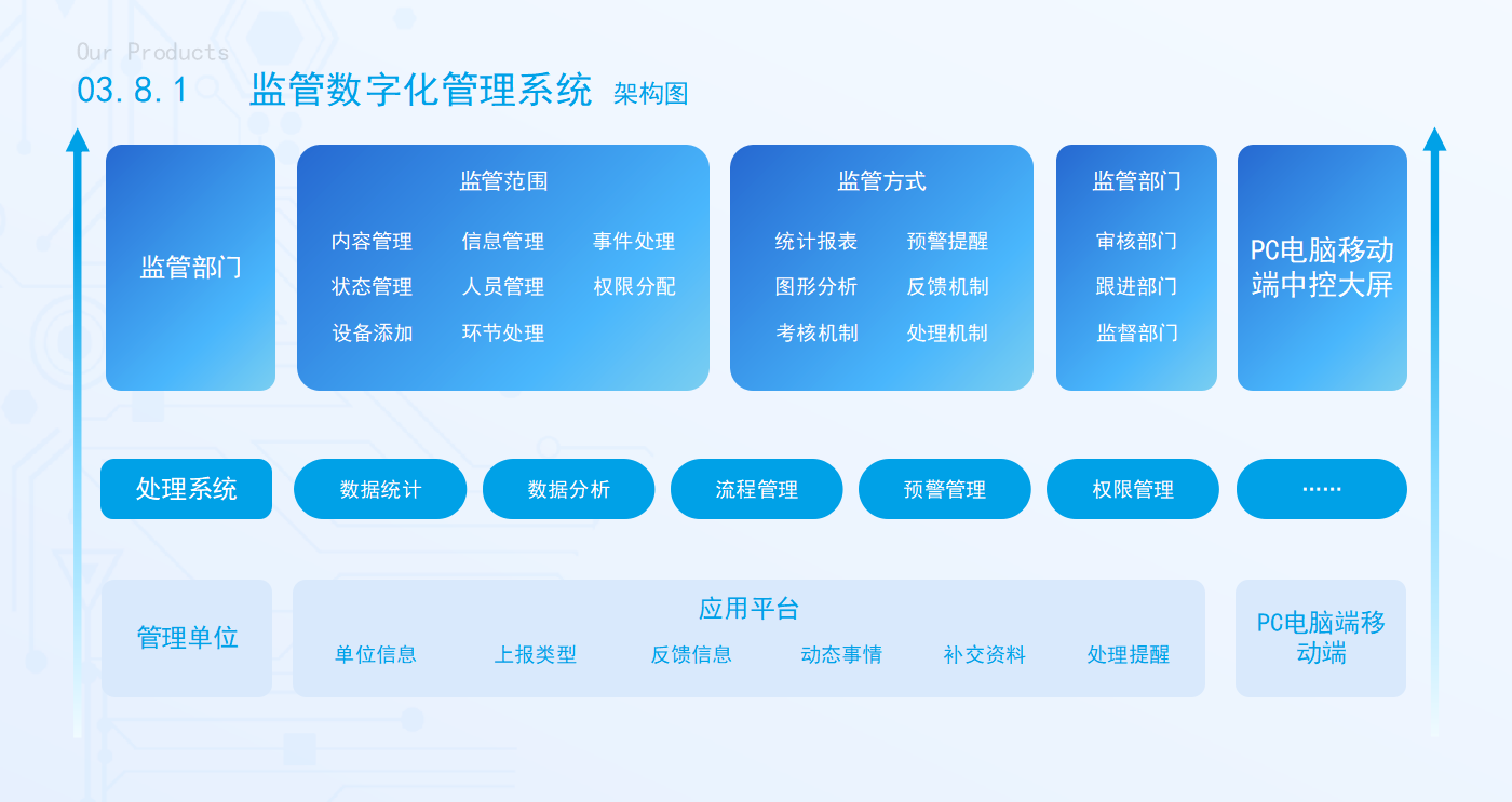总结:数字化监管管理系统是一个集“对象管理、智能预警、流程协同、数据分析”于一体的综合性监管解决方案。它不仅是工具,更是推动监管体系和监管能力现代化的“核心引擎”,助力监管部门在数字时代实现更高效、更公平、更智慧的治理。