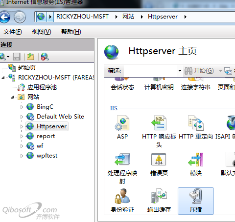 打开IIS。选中一个你的网站。在右边选项卡里选择压缩(compression)