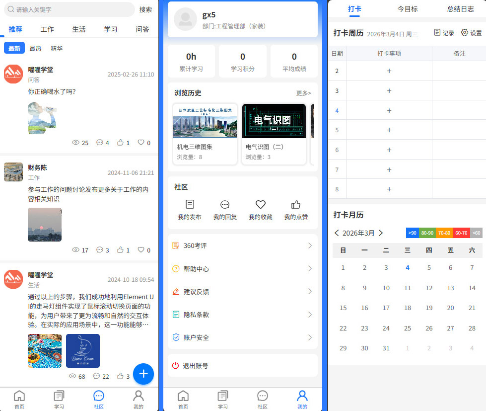 学习不应是孤岛,“社区”模块为全体员工提供了一个自由交流、分享知识、互助答疑的线上空间。